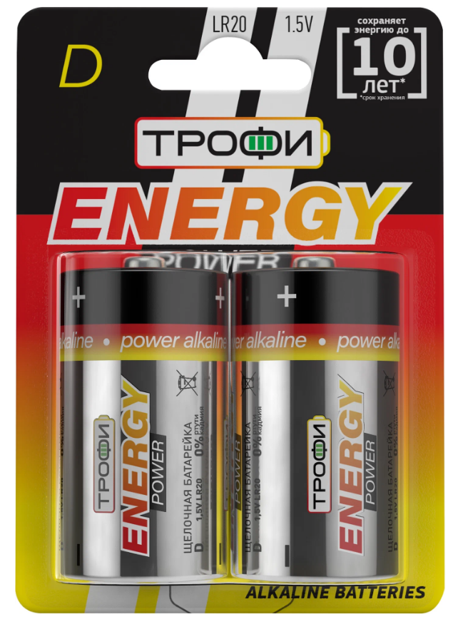 Батарейка Трофи LR20-2BL имеет типоразмер D, что делает ее совместимой с большинством устройств, требующих питания от батареек этого типа.