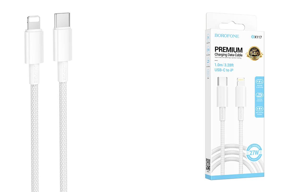 Borofone BX117 — это дата-кабель с разъёмами Type-C и Lightning, предназначенный для быстрой зарядки и передачи данных на устройствах iPhone, iPad и MacBook.