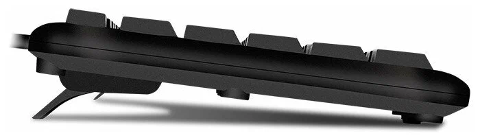 Водостойкий корпус и регулировка высоты Корпус кабеля обладает повышенной водостойкостью, что делает его устойчивым к влаге и пыли. Высота клавиатуры регулируется с помощью откидных ножек, что позволяет адаптировать клавиатуру под индивидуальные предпочтения и рабочие условия. Классический черный цвет и отсутствие подсветки