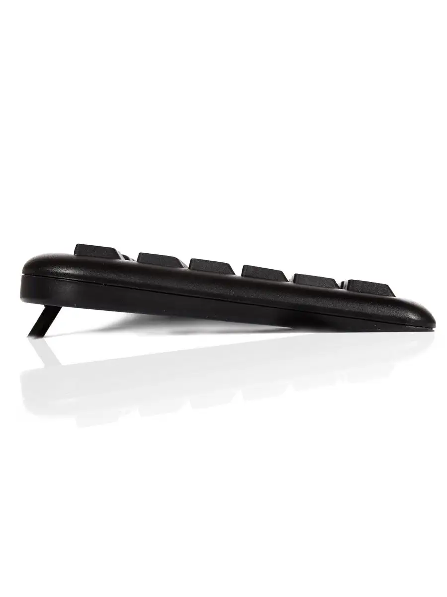 Клавиатура мембранная и обладает бесшумными клавишами, что делает работу за компьютером максимально тихой. Офисная эксплуатация станет ещё более продуктивной благодаря эргономичным кнопкам управления. Количество гарантированных нажатий не менее 300 000. Имеется достаточно длинный -1,4 метра USB-кабель, это удобно при подключении к настольному компьютеру.