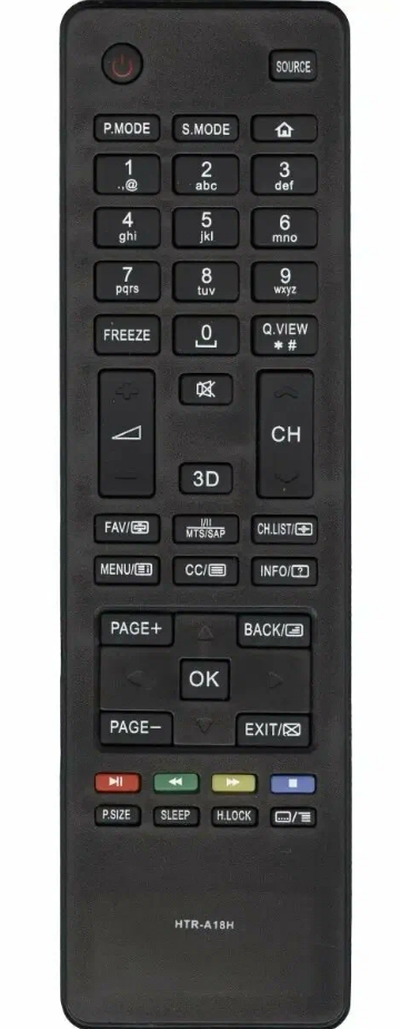 Телевизионный пульт дистанционного управления Huayu HTR-A18H, HTR-A18HA для телевизора Haier. Пульт ДУ работает без настройки, сразу после установки батареек, при условии совместимости с вашей моделью телевизора.