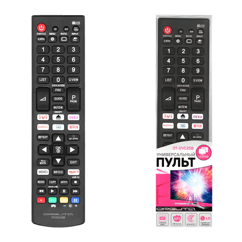 Этот пульт ДУ Орбита OT-DVC25 станет незаменимым аксессуаром для вашего телевизора LG, обеспечивая комфортное и простое управление всеми функциями устройства.
