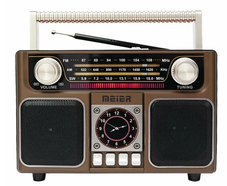 Всеволновой аккумуляторный радиоприемник Meier M-1306BT с поддержкой воспроизведения файлов с флешки или карты памяти, а также в беспроводном режиме по Bluetooth.