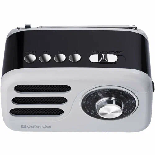 Компактный трёхдиапазонный радиоприемник с USB и блютуз, телескопической поворотной антенной и сменным аккумулятором.