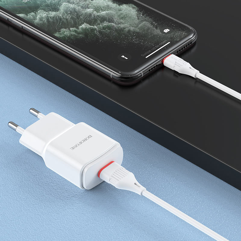 BOROFONE BA48A Orion сетевое зарядное устройство с одним USB портом, вилка EU, ток 2.1A, набор с кабелем Lightning