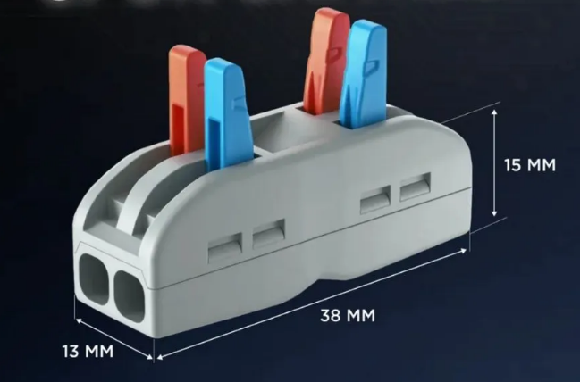 Универсальные клеммники 2-х контактные проводные соединяют два электрических кабеля с двух сторон зажимами аналог Wago.
