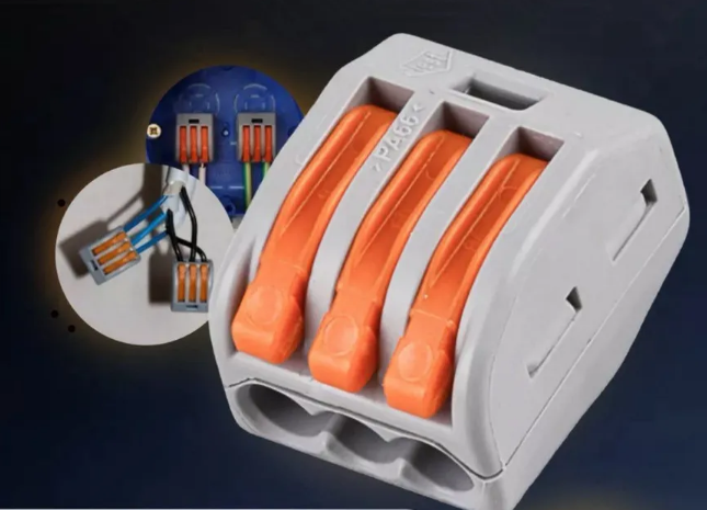 Универсальные клеммники 3-х проводные соединяют два электрических кабеля с зажимами аналог Wago.