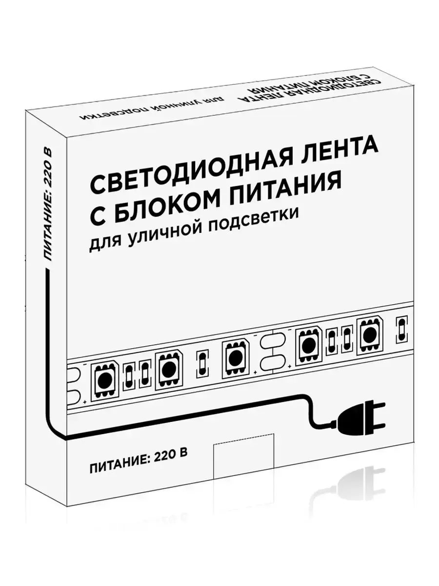 Комплект светодиодной ленты с блоком питания для уличной подсветки длиной 5 м предназначен для освещения в темное время суток. Led лента работает от сети переменного тока с напряжением 220В. Не боится влаги – можно использовать как внутри помещений (кухня, ванная комната), так и на улице, на даче, на открытой веранде или в гараже.