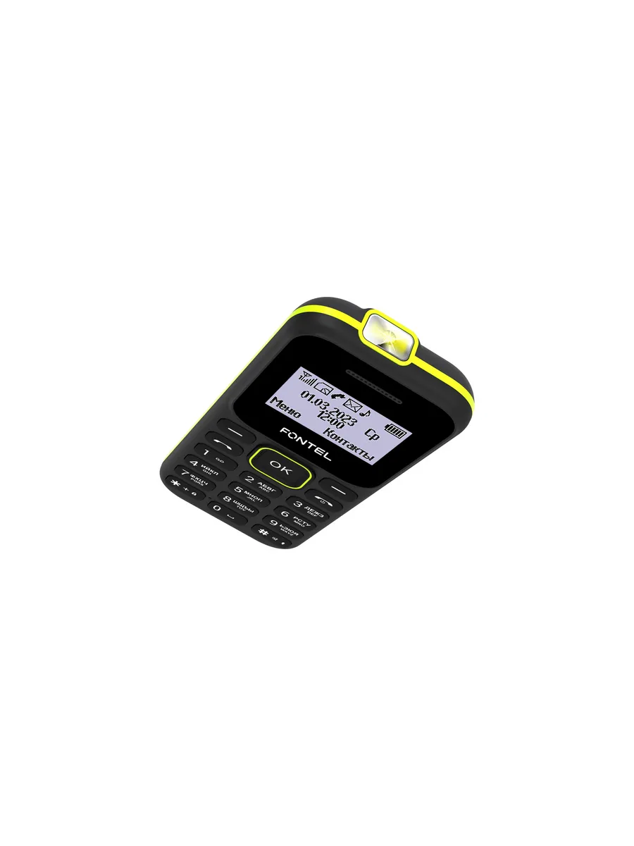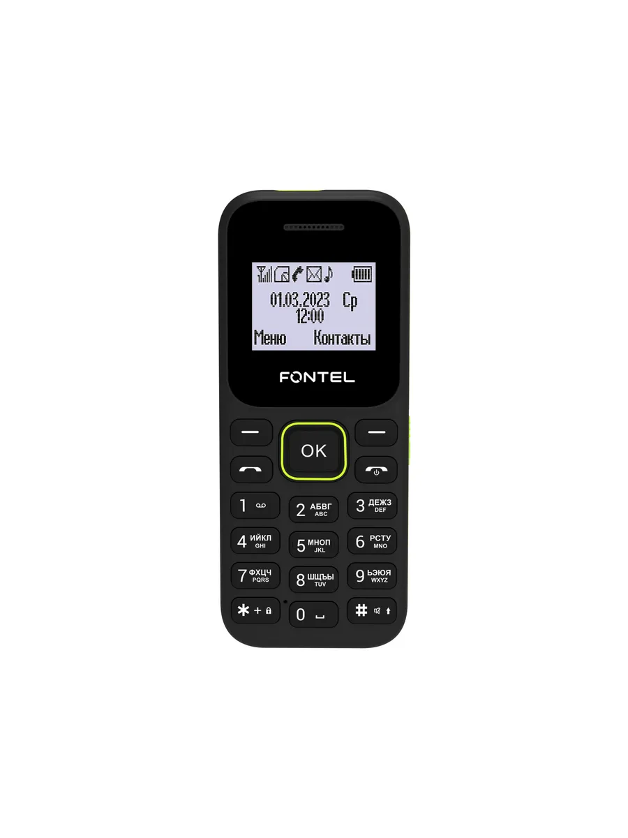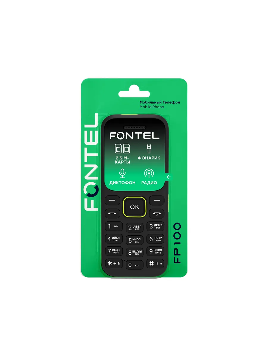 Мобильный телефон Fontel FP100 самый компактный и легкий аппарат в модельном ряду компании, отличительной особенностью которого стал монохромный дисплей с диагональю 1,44 дюйма и разрешением 128х64 пикселя, который не бликует на солнце и имеет широкий угол обзора.