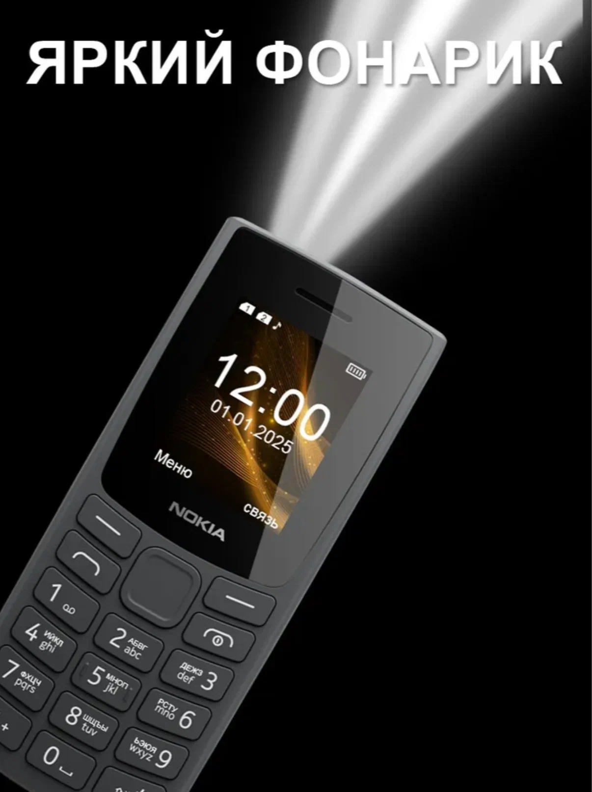 Nokia 105 (2023) - это мобильный кнопочный телефон, выпущенный в 2023 году. Он выполнен в классическом черном цвете и имеет стильный дизайн, который подойдет как для мужчин, так и для женщин.