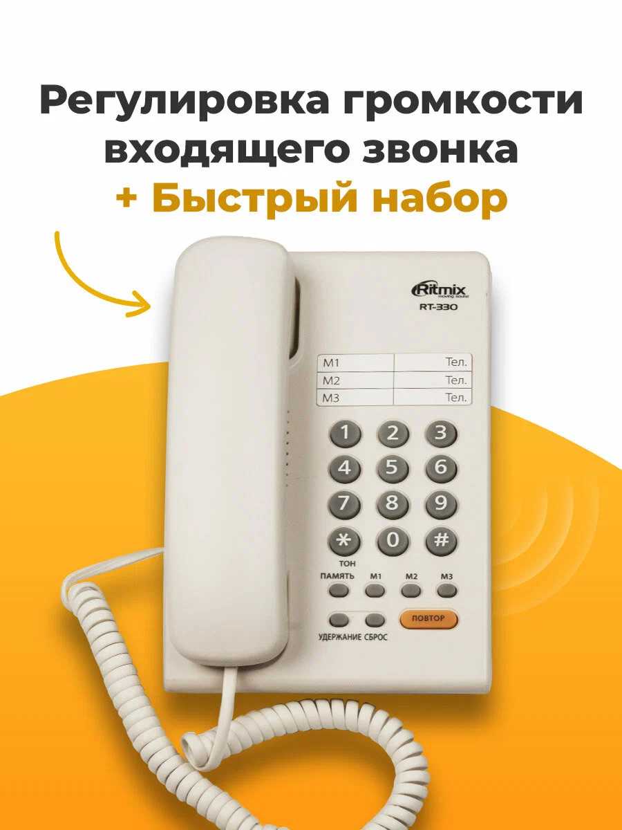 Проводной телефон Ritmix RT-330 - это стильное и функциональное решение для вашего дома, офиса или производства. Благодаря белому цвету, он легко впишется в любой интерьер.