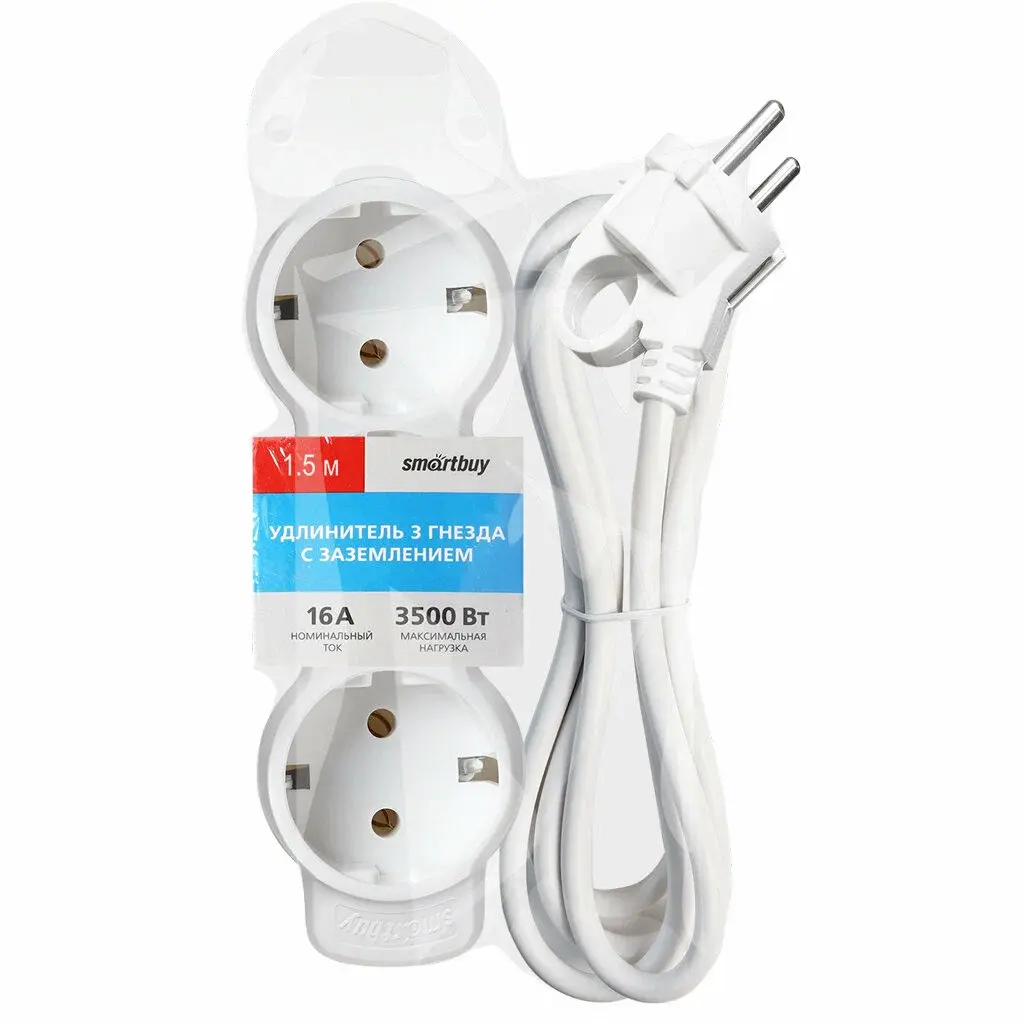 Удлинитель оснащен тремя розетками, что позволяет одновременно использовать несколько устройств. Номинальная сила тока составляет 10 А, а длина кабеля - 1,5 м. Это обеспечивает достаточное расстояние для подключения различных устройств.